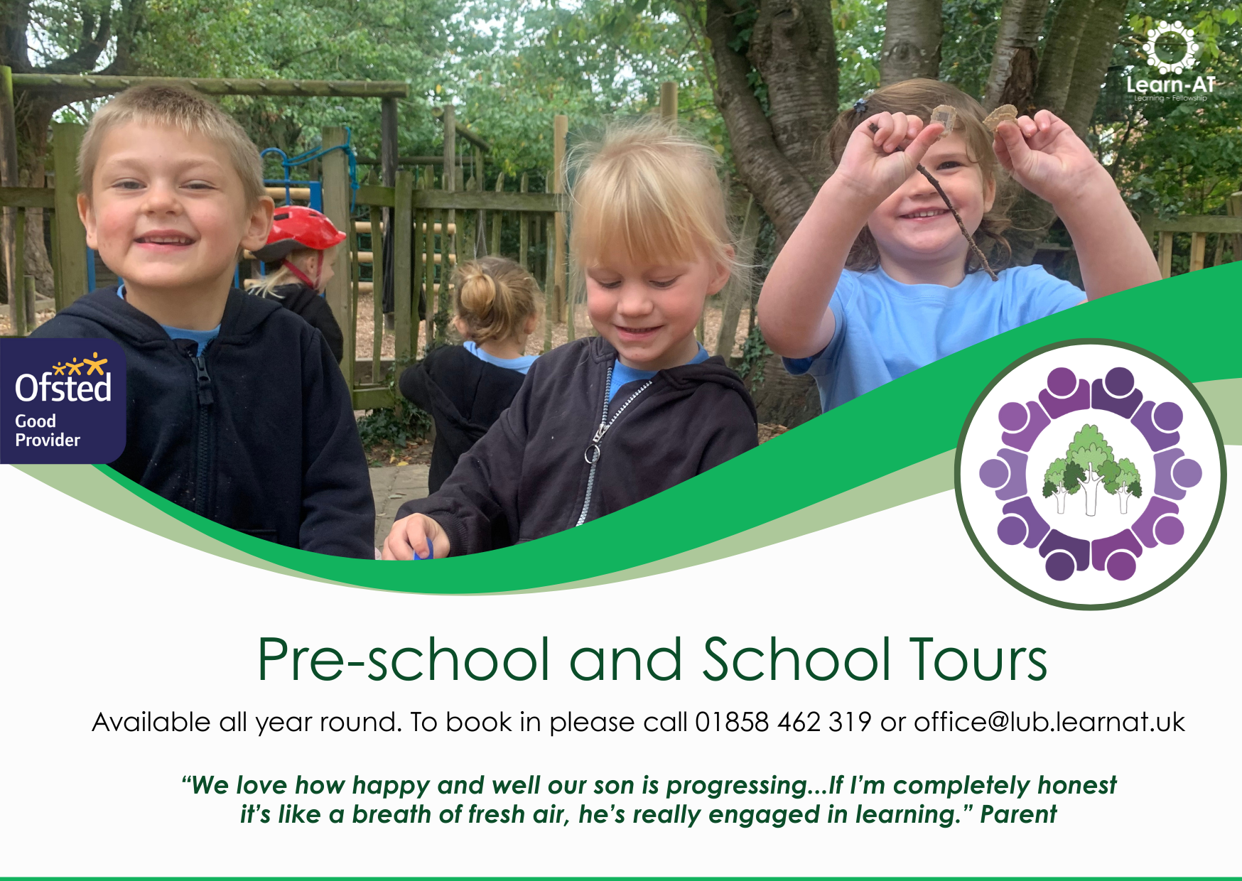 Tours are available all year-round and can be made at a time to suit you. To book a tour with us, please email office@lub.learnat.uk or call 01858 462319